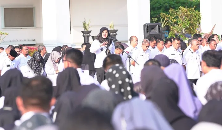 Hal itu disampaikan kala memimpin apel perdana pasca Idul Fitri 1447 Hijriah di lingkungan Pemkab Siak, Rabu (25/3/2026).