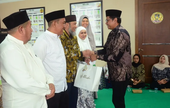 Corporate Secretary PT BSP, Ardian Ardi menyalami para karyawan yang akan berangkat haji. (Foto: Istimewa)
