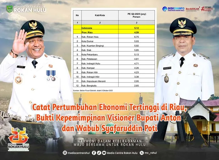 Dengan capaian ekonomi yang melampaui provinsi dan nasional, Rokan Hulu kini menjadi contoh nyata keberhasilan pembangunan daerah yang berbasis visi, kerja nyata dan kolaborasi.