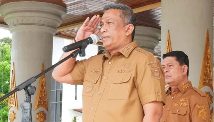 ROKAN HULU, FOKUSRIAU.COM-Bupati Anton ST, MM memimpin apel perdana usai libur lebaran 1446 H/2025 M di Kantor Bupati, Selasa (8/4/2025).