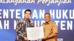Pj Gubri SF HAriyanto menandatangani prasasti peresmian jembatan. (Foto: Istimewa)